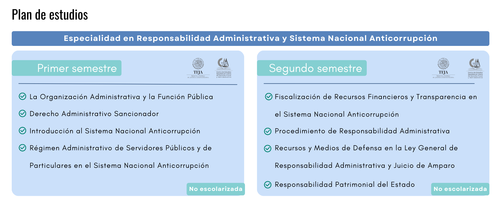 Especialidad en Responsabilidades Administrativas y Sistema Nacional Anticorrupción a distancia (No escolarizado)
